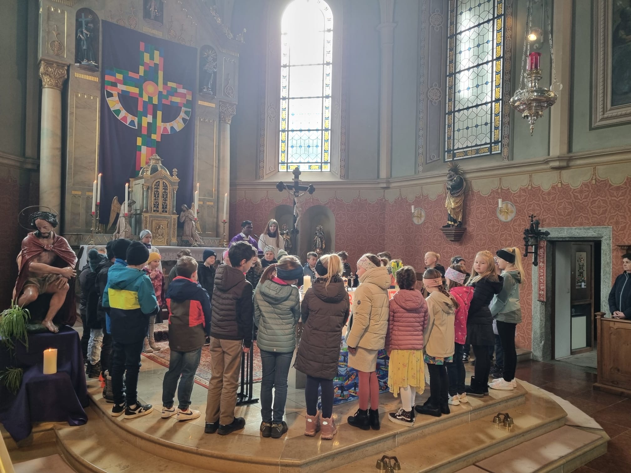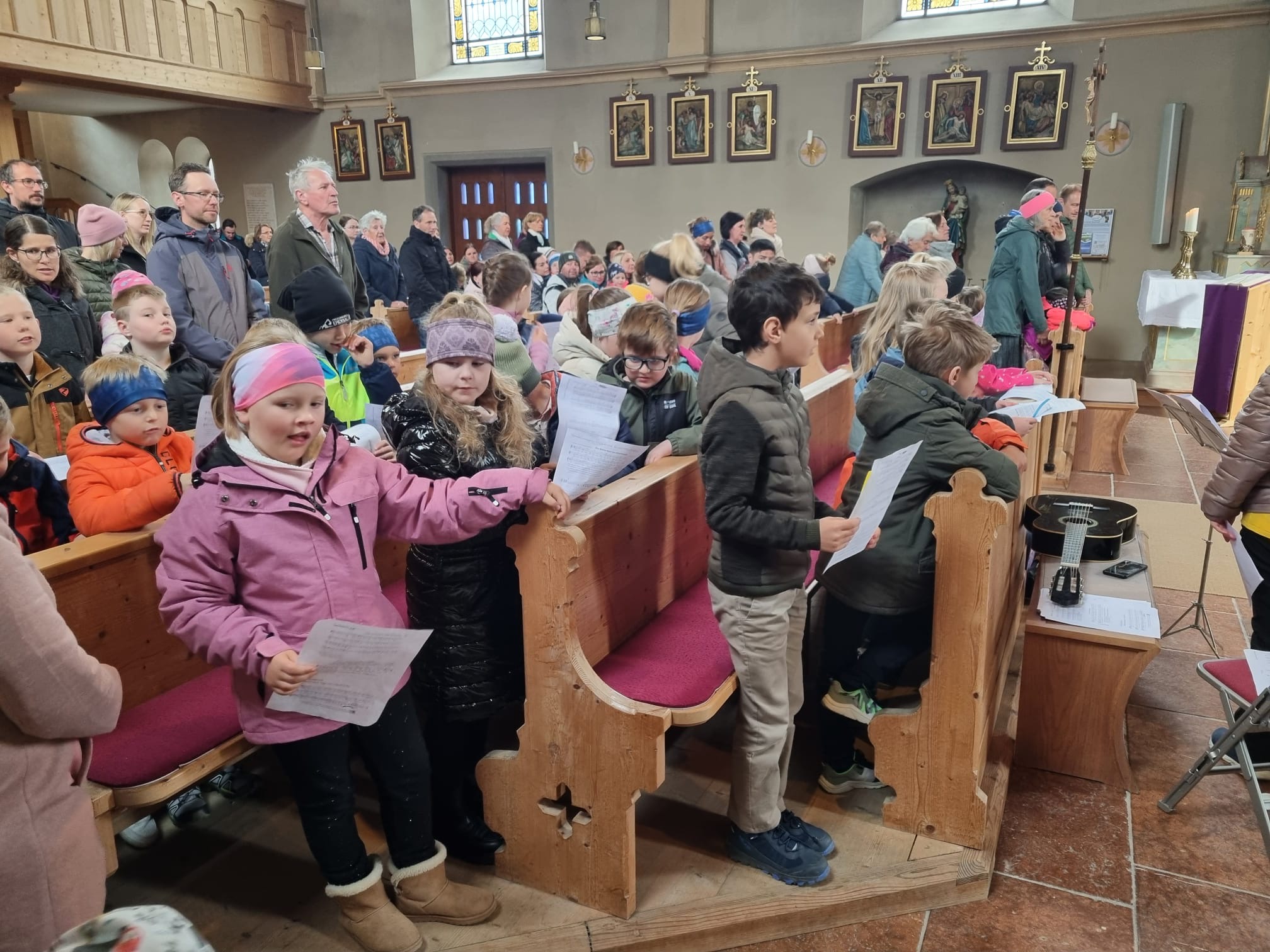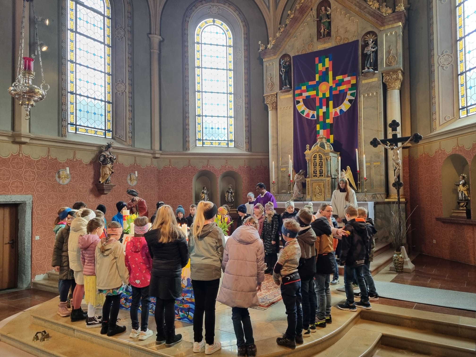 Beim heutigen Gottesdienst wurden die Erstkommunionkinder vorgestellt. Mit viel Freude bereiten sie sich auf ihre große Feier am 25. Mai 2025 vor.